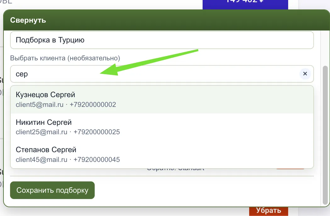 Интерфейс без лишних шагов: создание подборок туров понятно даже новому менеджеру с первого дня работы.