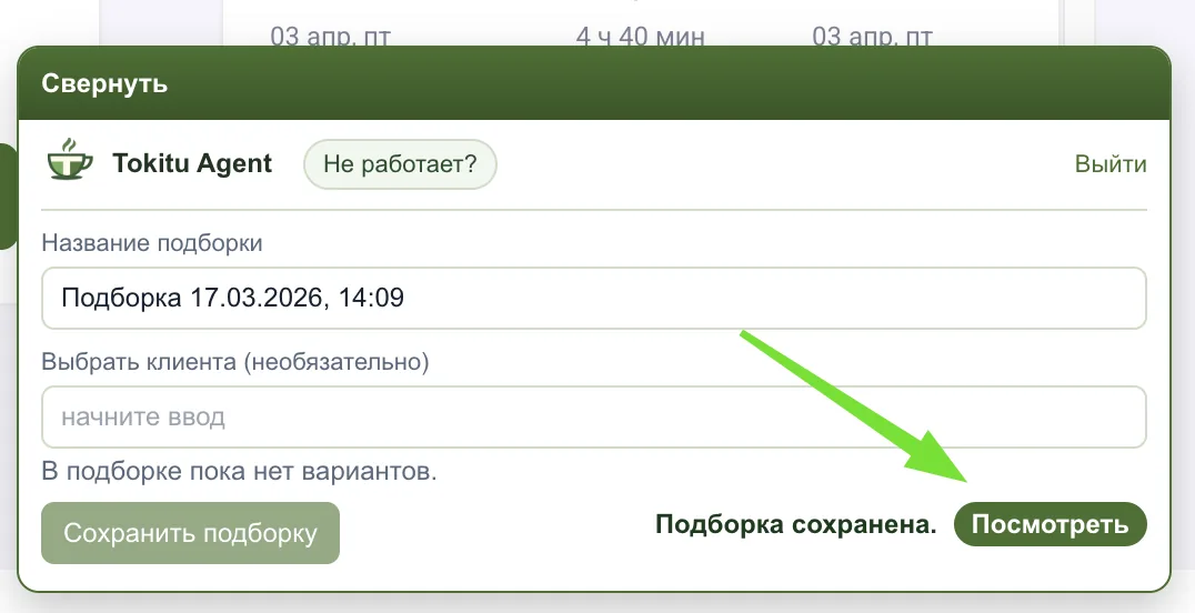 Подборка туров помогает агенту продавать быстрее: клиент сразу видит понятные варианты, цены, даты и условия. В Tokitu вы можете установить расширение, добавлять туры с сайтов туроператоров и собирать подборки по всем туроператорам в одном рабочем процессе.